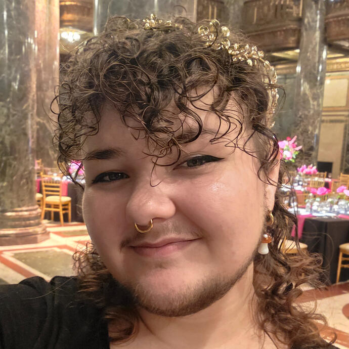 Soft yarn, Crepe paper, Easter grass, Produce netting (recycled material), Aluminum wire, Hot glue, Elmer's glue, Acrylic wash (used as spatter)